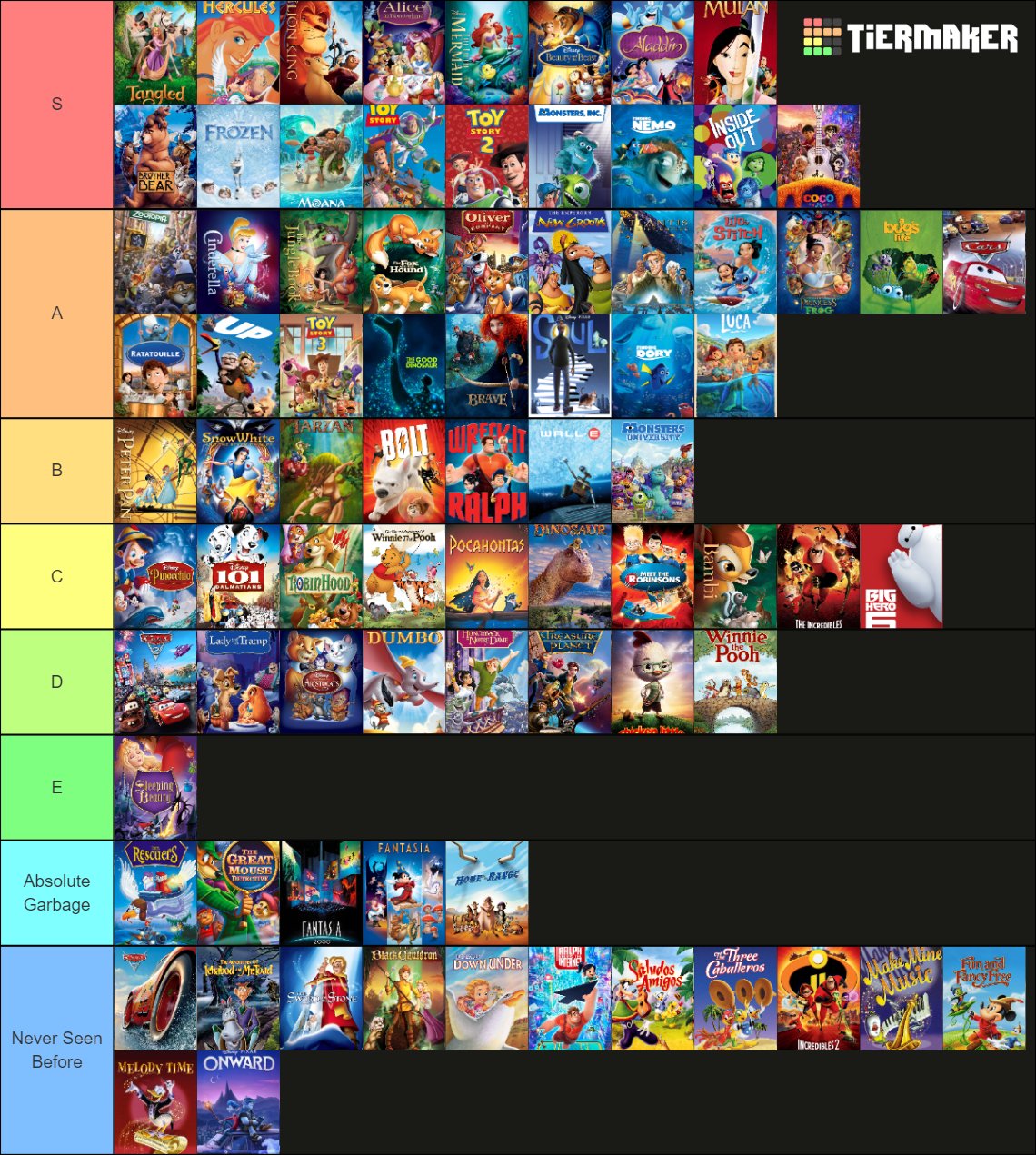 Brooke On Twitter Thoughts On My Disney Pixar Tier List Https T Co Qln6j7fp62 Twitter